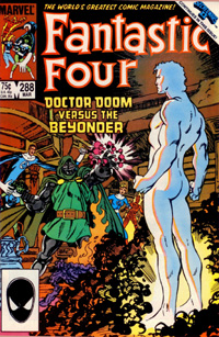 Reed and Johnny join the battle that has begun inside the Latverian Embassy. Doom however quickly overpowers all of them with a concussion ray. When they all awaken, Doom has imprisoned them in specialized cells. He reveals to them that he plans on using his knowledge of black magic to reconstitute his atomized body and return to it. However in summoning up this dark power, he attracts a greater power, the Beyonder. Doom attempts to submit the Beyonder but finds him too powerful. The Beyonder is ready to destroy Doom, but Mr. Fantastic halts him when he realizes that neither one has recognize the other. He concludes that the Beyonder does not recognize him because Doom is not in his true body, meaning that the Doom who fought in the Secret Wars had to have been from the future. Since Doom is in another body and does not know of the Secret Wars, the Beyonder would alter history if he killed him. Convinced that killing Doom would have repercussions, even for him, the Beyonder recreates and returns Doom to his true body and restores Norm’s mind. He then flings Doom into the past where the Secret Wars await him and leaves. Mr. Fantastic quickly releases his friends and urges them to hurry out of the embassy because the Doom who survives the end of the Secret Wars will surely appear to fill in the space left by the restored Doom.