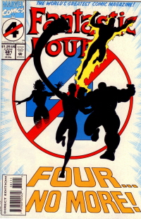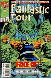 I’ve often seen Tom DeFalco referred to as the “evil one.” If it has anything to with this story, I don’t know. I think killing both Reed and Doom is a bold move. It certainly opens up possibilities, some of which DeFalco explored during the extended absence of these two characters. There is a lot to like in this story. As a supposed swan song for our favorite Latverian monarch, DeFalco manages to touch on various character notes. For instance, the start of the story, Thing’s vendetta against Doom for what he did to Sharon, harkens back to the early days of the character when Thing was just as much Doom’s arch-nemesis as Reed was. The culmination of the story, Reed and Doom “teaming up” only to have a dying Doom taking Reed with him out of spite, brings everything full circle. After all, it’s really Reed he loathes. There are also some things not to like in the story. For instance, I for one am not crazy about DeFalco’s characterization of Doom. On the one hand, I think he writes the Fantastic Four, and of course Doom, in the classic Stan Lee-60s style. On the other hand, this was never my favorite interpretation of the character. As I’ve often said, I think Doom’s matured (at least under certain writers) as a character. I give the story points for showing Doom to be interested in things besides destroying the FF. He is after all shown to be actively seeking out extra-terrestrial life, albeit for his own sinister purposes. It also get points for showing Doom, who throughout the whole story shows very little regard for his people, cave in at the last moment and decide to save the day. Bottom Line: *** out of 5