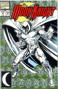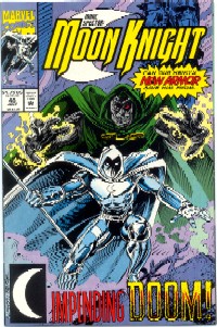 Although Doom's methods are questionable not only in their legality but in their logic, this is nonetheless a excellent ending to this two-parter. Some nice Doom action at the end as he fights Moon Knight and demolishes his own embassy in the process. It seems to be common practice to center non-FF Doom appearances around Doom's mother, i.e. trying to save his mother, getting someone else to save his mother, getting something that will let him save his mother, etc. This is one of the rare stories which center around his father, although you don't know it until the end. It should be mentioned that the editor of Moon Knight was Joey Cavilieri, the man who was Editor on the 2099 imprint. This story has a pretty strong Doom characterization. I wonder if Joey had a lot of influence on the story, or at least how Doom was portrayed, because Doom 2099 is to this day my favorite interpretation of the character. This story is a rare moment where I can clearly see the evolution from regular Dr. Doom into Doom 2099.