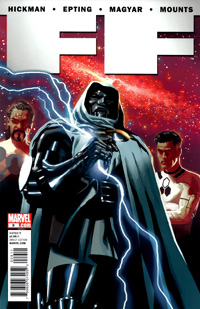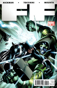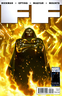 Comments: Jonathan Hickman's Fantastic Four run is truly a feat that must be read in its entirety. Spanning four years and two titles, epic is the only word to describe it. Overall Hickman did Doom fans many favors. First, he undid the damage done to the character during the Fall of the Hulks debacle. Second, he restored Kristoff to Doom's side. Third, and most important of all, he wrote the real Doom. He gives us readers a Doom who knows what honor is. Does he want power? Yes. Is he a villain? Yes. Is he perfect? No. Nor should he be. Fantastic Four #611 is a fantastic (pun not intended) study of the character. Though the outcome is one that has been explored many times before (Emperor Doom, Doom: The Emperor Returns), Hickman does it with a unique flair that shines through. Although Doom is only one small part of Hickman's overall story, and this arc comes with some serious required reading to understand the whole...its highly recommended for Doom fans.