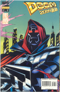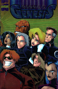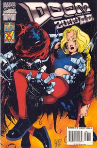 Summary: In the Negative Zone, a volt storm hits a group of workers and short circuits the stasis field of of four individuals in stasis pods. On Earth, a mysterious mutant known only as Dust journeys to Halo City in search of a group of trouble young mutants. Among one of them he believes is the mutant messiah who must be protected from Herod. Once within the city, Dust seeks out Cerebra of the X-Men to enlist her help. She takes him to see Morphine Somers who, after some convincing, takes them both to the sublevels of the administration building where he has kept the group. Face to face with the children Dust calls upon them to not give up on the dream of a better life for mutant kind. In Manhattan, a lone figure begins to fight crime along the Thirteenth Street line, otherwise known as the Fault Line. The vigilante stops a drug dealer from giving away a free sample drug to a family and discovers an Alchemax plot to use the new drug to bring about sterility among the inhabitants of Downtown. Elsewhere in the city, Suzanne Carter and Mirielle Radley launch a missile into an Alchemax building as part of their activities in the Re-Activ-8 movement. The dark vigilante who patrolled the Fault Line observes this attack and enters the building through the newly made hole. Once inside he confronts the creator of the sterility drug, Frank Wilson and forces him to take all of the drugs he made. Creator Comments: Daredevil 2099: