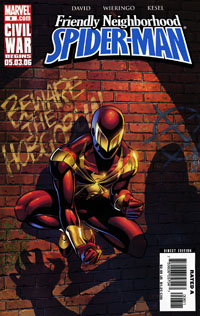 Summary: In the future, Robin Borne explains to her boyfriend Lar that she has made a study of the multiverse. Her study shows that the events of another universe which intersects with their own will have cataclysmic effects on their own, possibly erasing them. Robin's father, the Spider-Man of 2211, arrives and arrests her for crimes that she will commit in the future. Robin is placed in stasis where she lives a fictional life, until Lar manages to break her out. Unfortunately the break-out affects her already troubled mind and sends her further over the edge into madness. Afterwards, as Spider-Man 2211 interrogates Lar, Robin breaks-in in her Hobgoblin armor. She throws one of her Ret-Con bombs at her father, but strikes Lar instead, erasing him from existence. Robin, now the Hobgoblin of 2211, escapes. Her mission, to erase Spider-Man from existence across all realities. Spider-Man 2211 monitors the multi-verse and sees that she has derailed a universe by moving it's Ben Parker to another reality. he travels to 616 to return Ben to his proper universe and capture Robin. Meanwhile in 616, the Hobgoblin disables Peter's armor and hauls him away, leaving the alternate Ben face to face with May Parker.